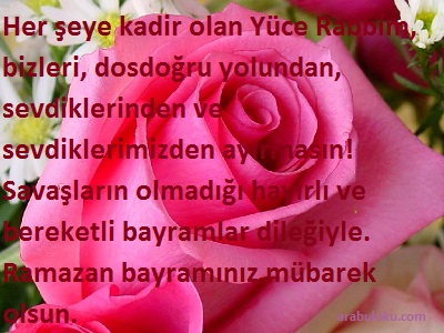 Ramazan Bayramınız kutlu, yüreğiniz umutlu, umutlarınız atlı, sevdanız kanatlı, mutluluğunuz katlı, sofranız tatlı, mekânınız tahtlı, ömrünüz bahtlı, yuvanız bereketli olsun… Damağınızı, ruhunuzu ve çevrenizi tadlandıran, gerçekten güzel ve bereketli bi
