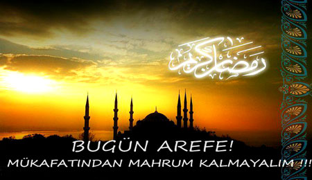 Bugünün feyiz ve bereketi üzerinizden eksik olmasın. Niyetleriniz makbul, amelleriniz kabul olsun. Arefe gününüz kutlu olsun.