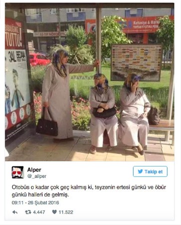 > Otobüs tıklım tıklım şoför bile ayakta gidiyor, teyze de pis pis bana bakıyor. Lan ayaktayım zaten, ne yapayım öleyim mi teyze ya.
