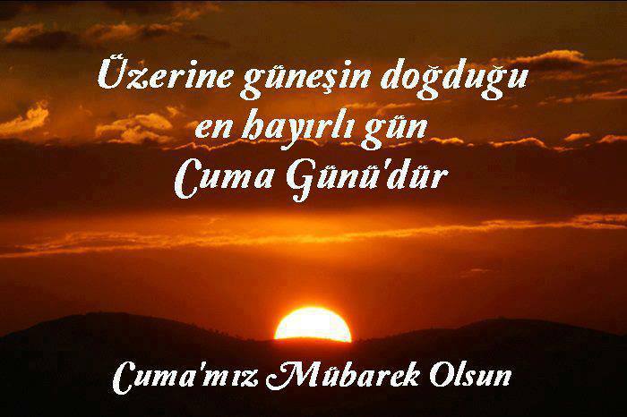 –Cuma günleri,duanın kabul olacağı bir an vardır. Cuma”nın gündüzü, gecesinden daha kıymetlidir. Allah Cumamızı ve ettiğimiz duaları kabul etsin inşallah. Allah’ın Selamı Rahmeti, Bereketi üzerimize olsun! Günümüz aydın Cumamız Mübarek Olsun! Hayırlı Cumalar.