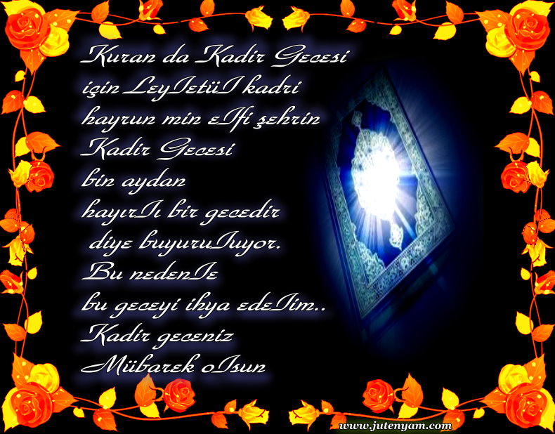 Kadir Gecesi değer gecesidir, Allah tarafindan değerli kilinmiş bir gecedir. Kadir Gecesi bin aydan daha hayirlidir. Bu gece bir ömürden daha hayirlidir. Ellerin açildiği, gözlerin dualarla yaşardiği, kalplerin okşandiği Kadir Gecesinde bütün insanlarin günahlardan uzaklaşip tövbelerinin kabul edilmesini niyaz ederiz. Allah tüm inananlari iman yolundan ayirmasin.