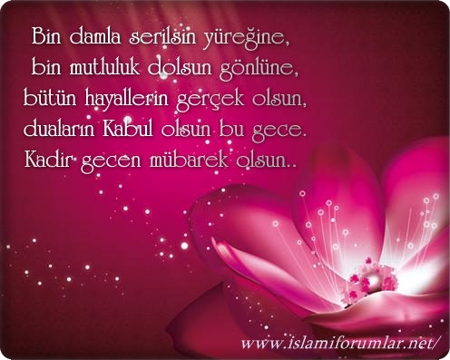- Bin damla serilsin yüreğine, bin mutluluk dolsun gönlüne, bütün hayallerin gerçek olsun, duaların Kabul olsun bu gece. kadir gecesi mübarek olsun..