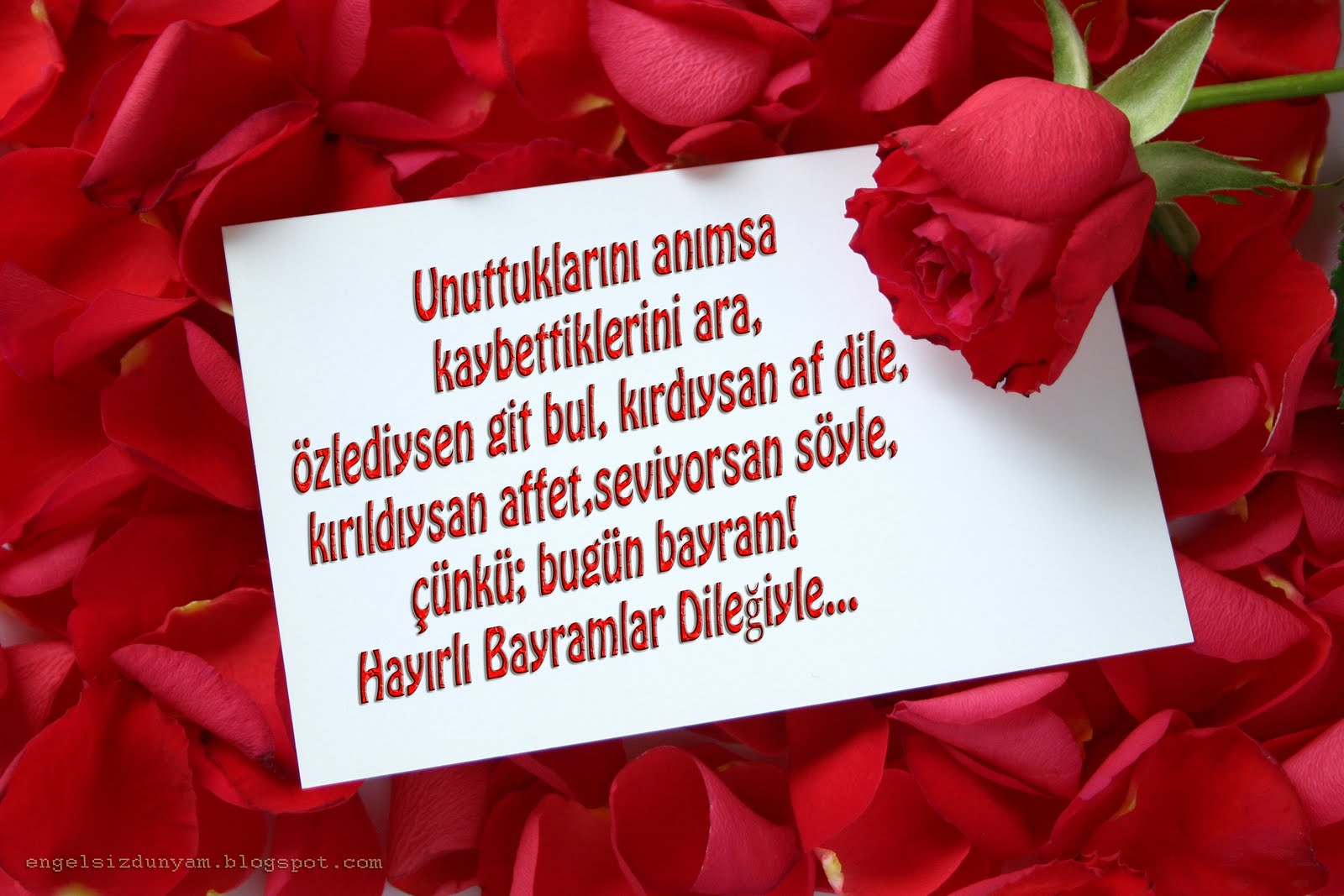 Kalpler vardır sevgiyi yaşatmak için, insanlar vardır dostluğu paylaşmak için ve bayramlar vardır sevgi ile kucaklaşmak için.Bayramınız kutlu olsun.
