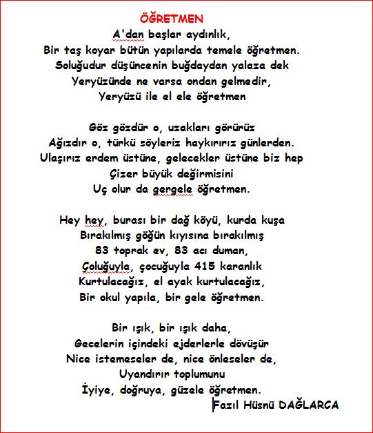 öğretmen ile ilgili şiirler