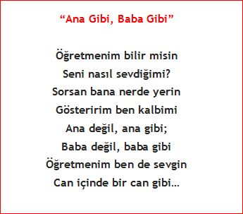 Öğretmenim, babam, ana kucağım