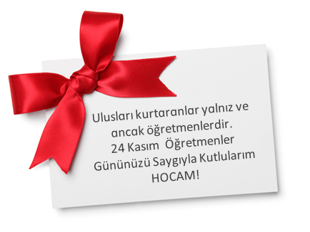 Dünyanın en degerli varlıkları olan siz Öğretmenler! Bugün, Türk Öğretmeninin Şeref Günüdür. Ona Olan Saygıyı Yenileme, Onun Yüceliğini Anma Günüdür. Böyle Anlamlı Bir Günde Hepinizi Sevgiyle, Candan Kutluyoruz. Öğretmenler gününüz kutlu olsun!