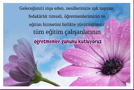 Siz Öğretmenler “sevgi Elçileri” Siniz. Sınıfta yaşama sevinci, Toplumda Huzur, Ülkede Barış, Meslektaşları arasında demokratlığın Simgesisiniz. Öğretmenler Gününüz Kutlu Olsun