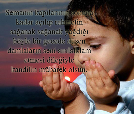 Bin damla serpilsin yüreğine, bin tatlı mutluluk dolsun günlerine, bin bir hayalin gerçekleri bulsun, her türlü duaların kabul olsun, kandilin mübarek olsun… 1
